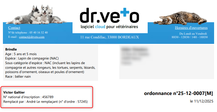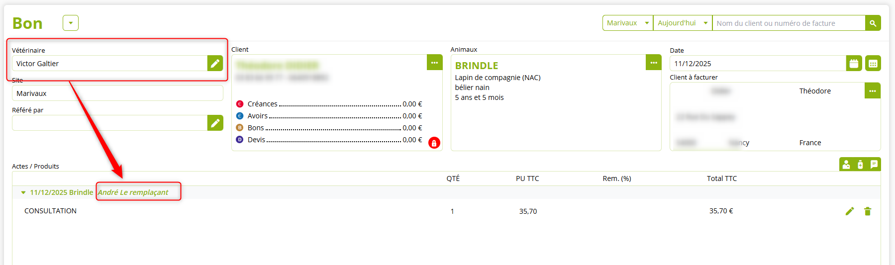 · Il réalise ses visites au nom du vétérinaire remplacé, tout en restant entièrement responsable de sa prescription (produits, actes et éléments saisis dans la visite).