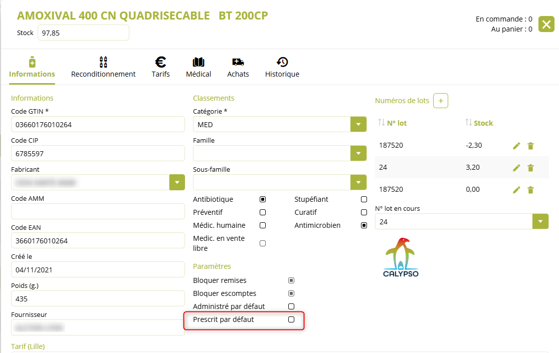 PRODUITS & ACTESIl est désormais possible de définir un médicament comme “Prescrit par défaut”.