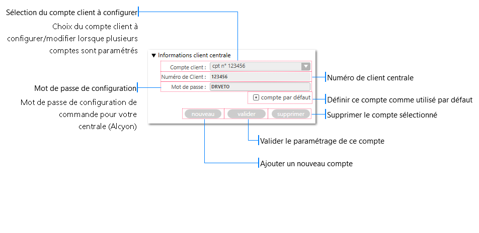 La configuration pouvant varier d'une centrale à l'autre, merci de vous rapprocher du support afin de convenir d'un RDV pour le paramétrage.