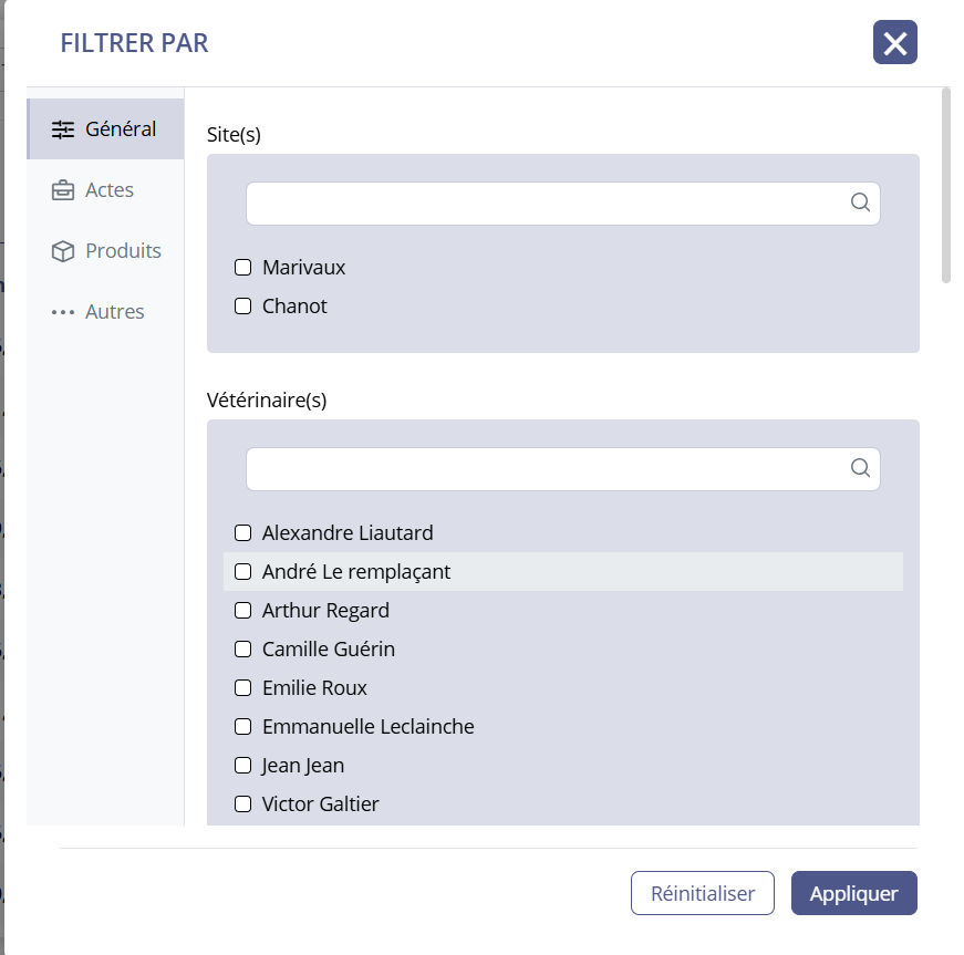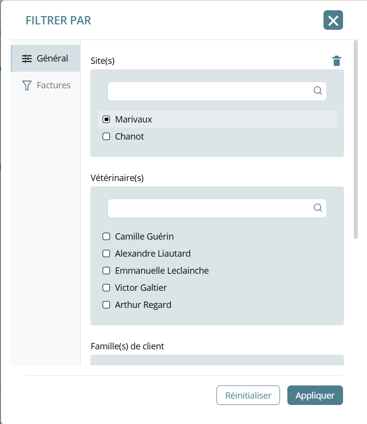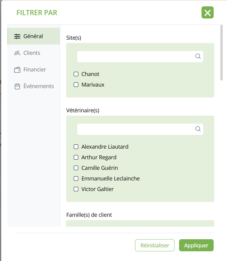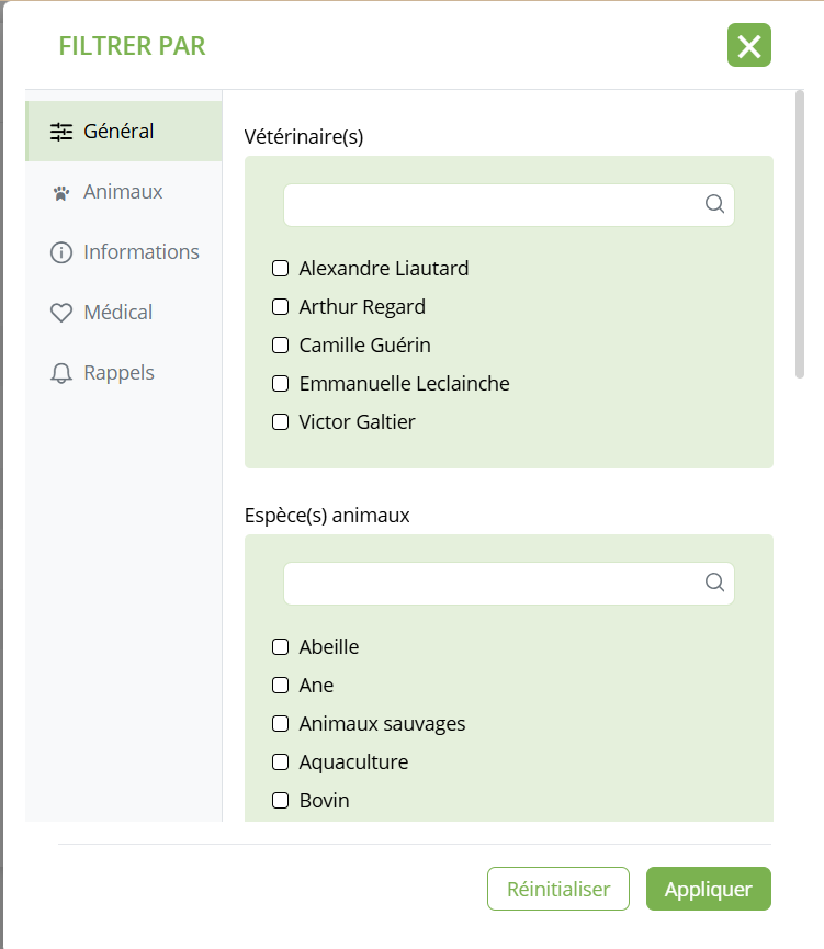 Grâce à la dissociation des filtres avancés entre clients et animaux, vous gagnez en clarté sur les différentes possibilités de recherche vis-à-vis de vos animaux, nous permettant ainsi de les faire évoluer.