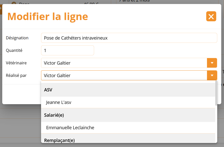 Depuis cette liste déroulante, vous pouvez sélectionner la personne en charge de réaliser l’acte.