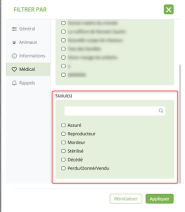 Voici la première évolution des filtres avancés pour les animaux, la possibilité de les afficher par « Statuts ».