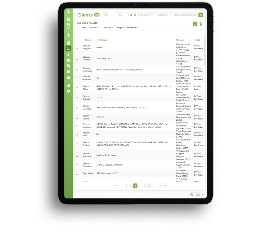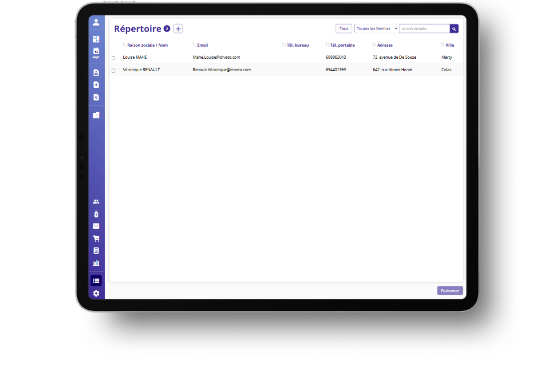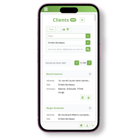 Suivant la taille de votre tablette ou smartphone, le module client s’adapte automatiquement. Vous conservez la liste des clients sous forme de tableau, mais celle-ci devient plus aérée et lisible. L’ergonomie a également été retravaillée, avec une présentation des résultats sous forme de cartes.