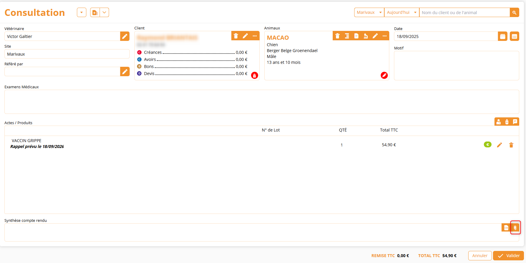 Vous pouvez désormais ajouter une ou plusieurs pièces jointes directement à une consultation, que ce soit individuellement ou en groupe ! Tous les documents importés sont automatiquement liés à la consultation et à la fiche de l’animal dès que celle-ci est validée.